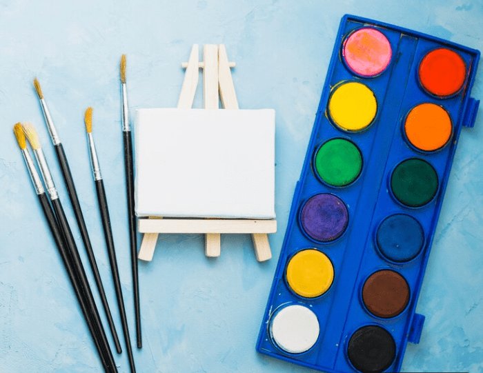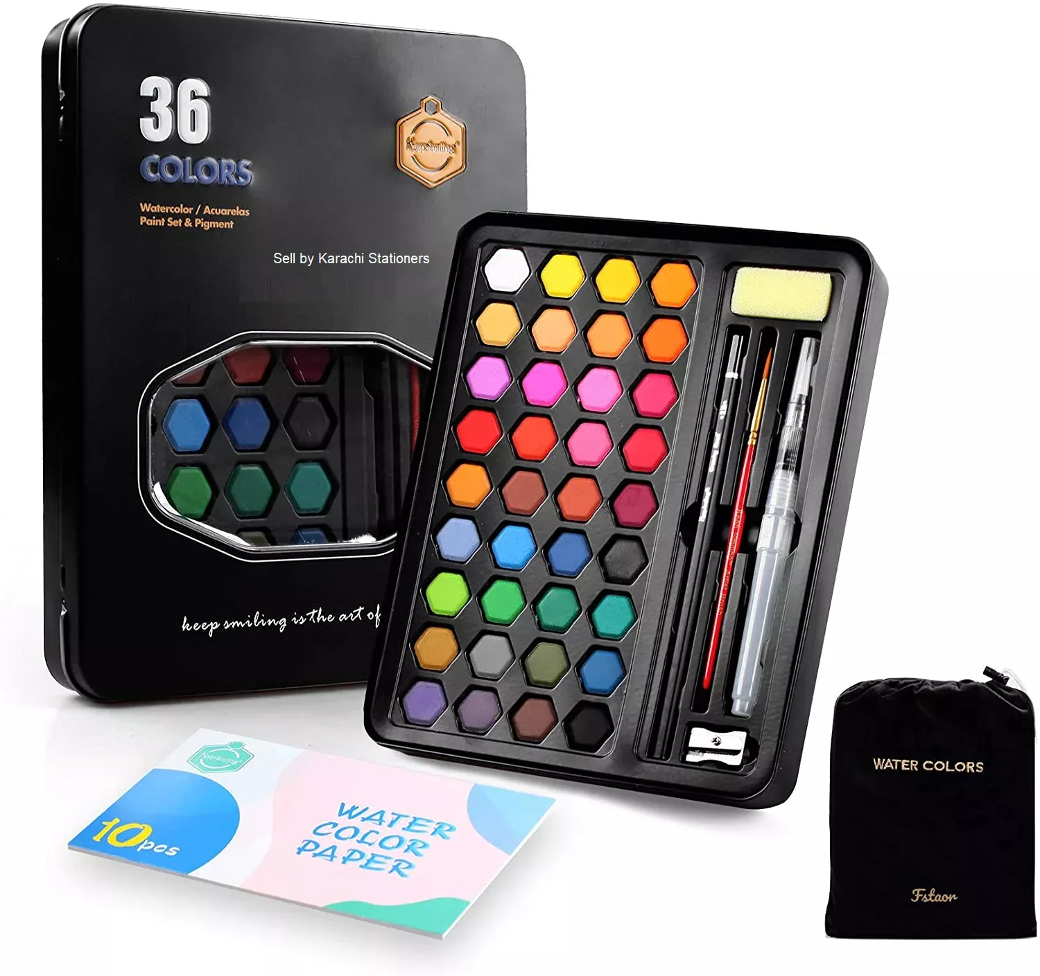A complete set of watercolor paints with a variety of shades for beautiful artwork.